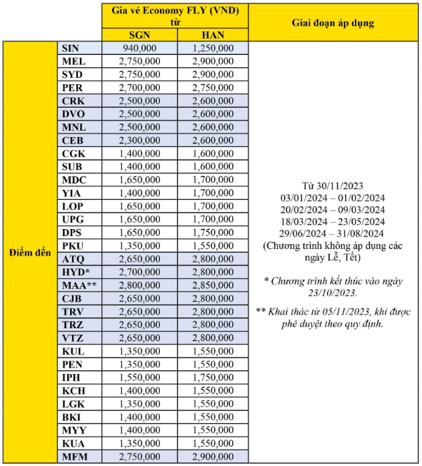 - Chương trình ưu đãi có hạn và có thể không có sẵn trên tất cả các chuyến bay hoặc tất cả các ngày.